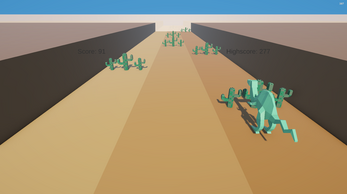 Jump over cacti, change lanes, and try to survive as long as possible while the game gradually becomes faster and more challenging.