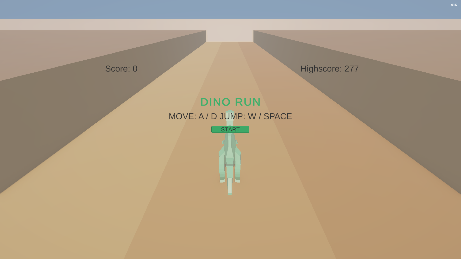 Dino Run is a small endless runner created as part of the 1st semester course "3D Prototyping & Scripting."